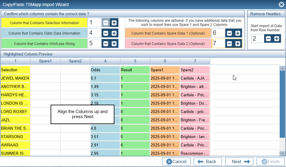 Align the Columns up and press Next.