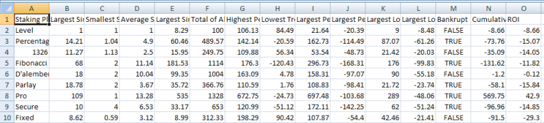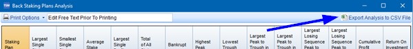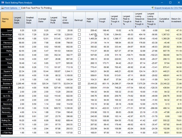 The Analysis Comparison Screen compares all Staking Plans results against each other.