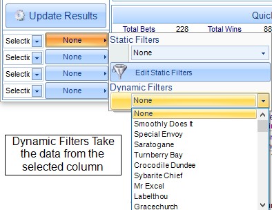 There are 2 types of filters. Static and Dynamic. Static are fixed filters that you have previously set. Dynamic Filters use the text from the columns themselves. In the screenshot above, the dynamic filter drop down is shown.