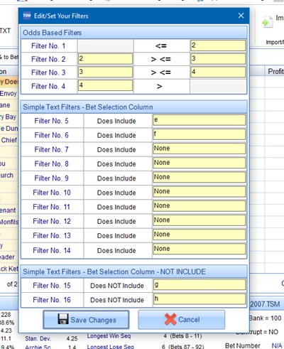 The first four filters available to you are odds ranges. The rest of the filters apply to a simple text search.