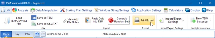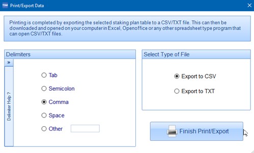 Select the staking plan you wish to export. Then press the Print/Export button which can found on the 'File' Tab.