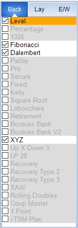 The Image on the Below left shows all staking plans enabled. The Image on the below right shows only a few enabled. To update any changes made simply press 'Update Results' to Reload the Staking Plans.