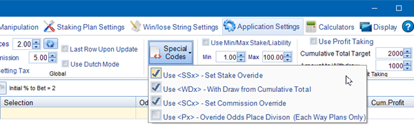 - Use <SSx> - Set Override Stake - Allows you to override the calculated stake.