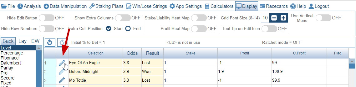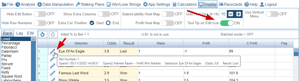 Second image shows Tool Tip on Edit Icon Switched ON. An extended tool tip is displayed that shows the data for entire row.
