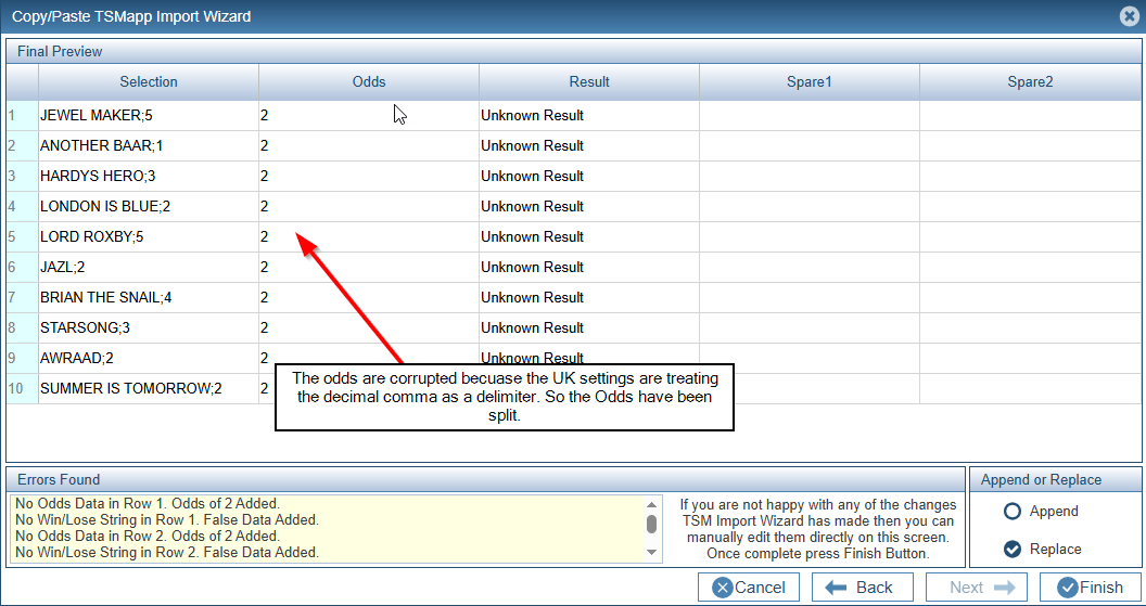 3) Use the Import Wizard to correct the original data so that it matches your browser's current settings.